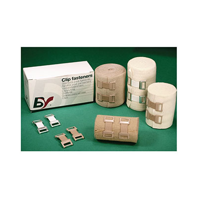 Clip fasteners with metalic ends for bandage fixation